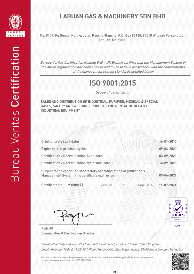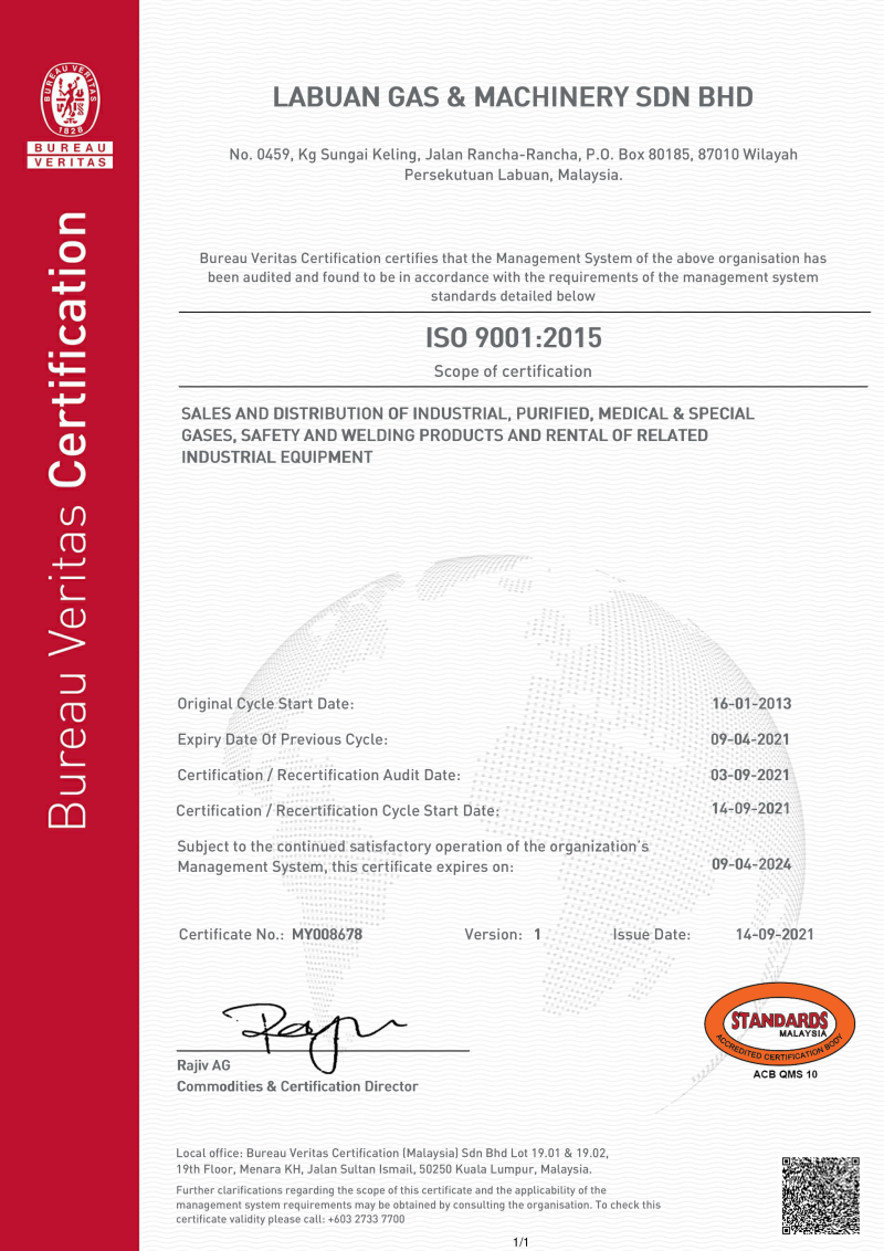 From delivering high purity gases to providing innovative services, LGM has established a Total Quality Management culture that is recognized with certification to ISO 9001 Quality System standard for the sales, distribution and services of industrial, purified, medical and special gases; safety and welding products; and rental and sales of gas racks to BS EN 12079:2006, ISO 10855:2018 and DNV 2.7-1 and of related industrial equipment.